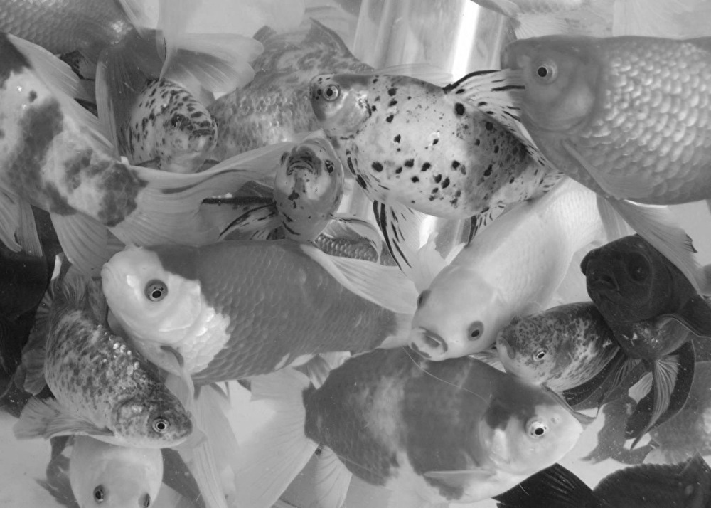 The sight of a school of fish swimming seems to me like the neurons transmitting information in the brain. Some swim fast, others swim slow or endlessly wander around. The sight of a school of goldfish colliding with each other but still maintaining balance seems that they are resonating with each other.